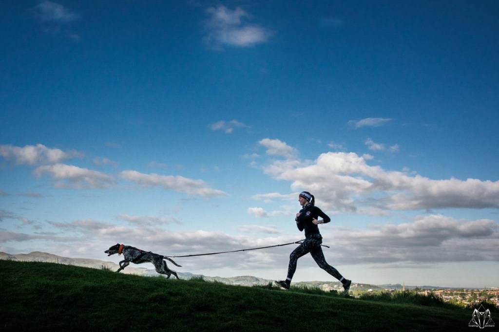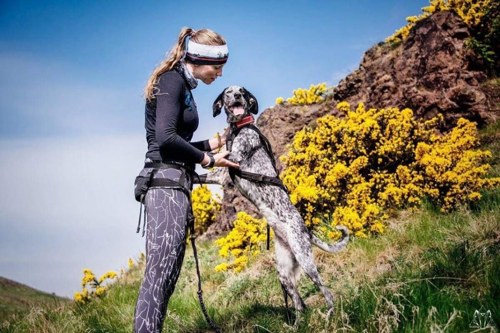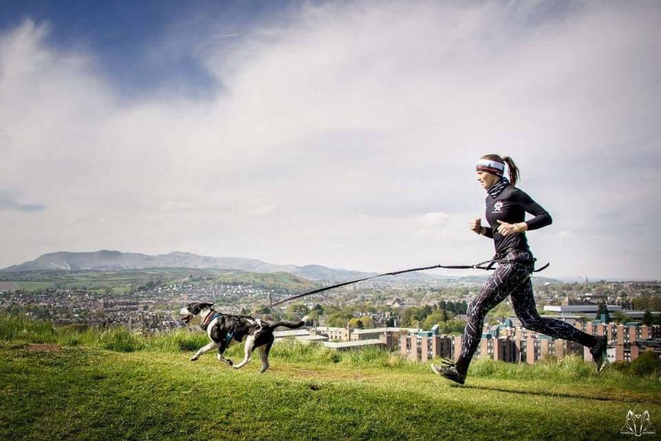 Canicross is cross country running with your dog. You use special equipment. You wear a human belt that sits on your hips, it has a bungee lead attached to you and your dog and your dog has a special sled running harness.